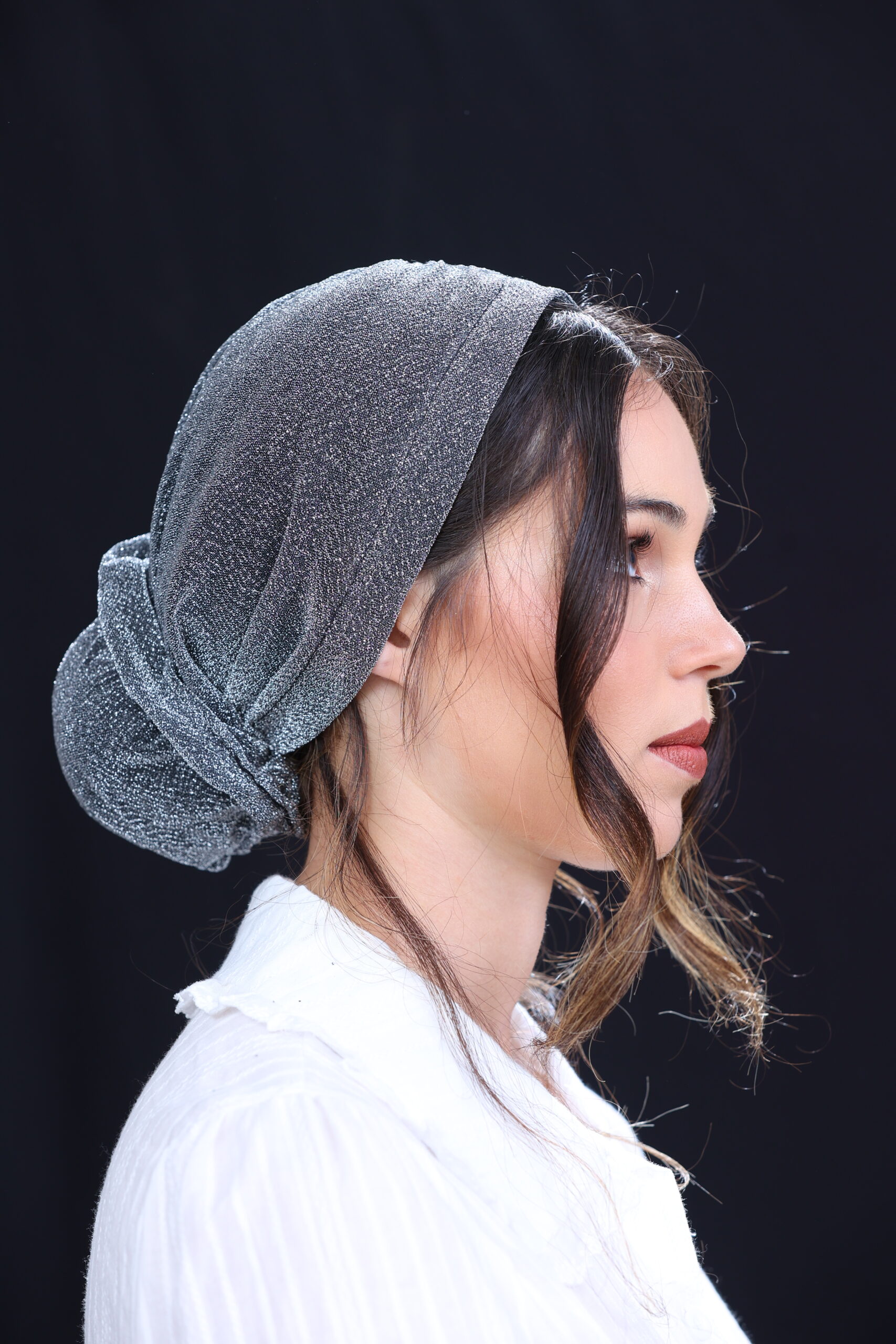 טורבן אפור מנצנץ + גומיה תואמת